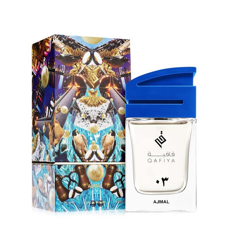 - Ajmal Qafiya 03 este un parfum unisex ce imbina modernitatea cu notele traditionale arabe. Aceasta apa de parfum se deschide cu note proaspete si picante, avand in prim-plan Ligah, un acord specific arabiei vechi. Inima parfumului dezvaluie arome florale luminoase de violeta si trandafir turcesc, completate de elemente lemnoase.