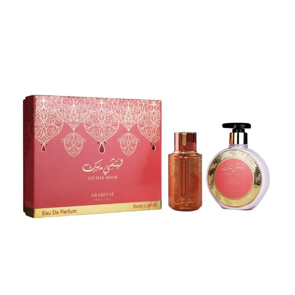 Set Arabiyat Prestige Lychee Musk, Unisex, Eau De Parfum 100 ml + Lotiune de corp 300 ml