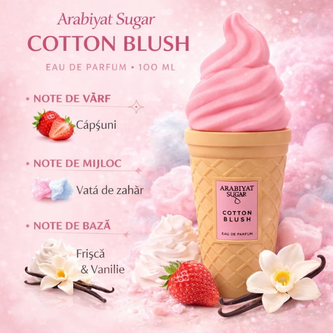 Arabiyat Sugar Cotton Blush este alegerea ideala pentru femeile care iubesc parfumurile dulci, moderne si pline de personalitate. Perfect pentru purtare zilnica sau pentru momentele speciale in care doresti un parfum feminin si memorabil.
