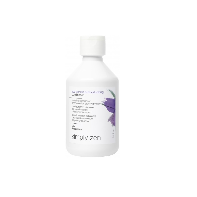 Balsamul Simply Zen Age Benefit & Moisturizing este un produs special conceput pentru parul vopsit si usor uscat. De asemenea, este special creat pentru axul care imbunata?este aspectul, moliciunea si densitatea parului. Contine acid hialuronic; ingrediente active si extracte specifice din plante cu proprietati hidratante, antioxidante, protectoare si hranitoare; proteine; filtru UV. Acest produs lasa parul moale si cu o stralucire sanatoasa, usor de gestionat si protejat.