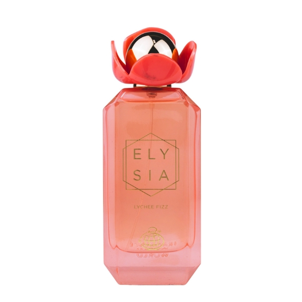 Parfumul Fragrance World Elysia Lychee Fizz Eau de Parfum este un parfum unisex fructat si luminos dominat de aroma exotica de lychee. Compozitia imbina note fructate si citrice cu accente florale si o baza eleganta de mosc si ambra.