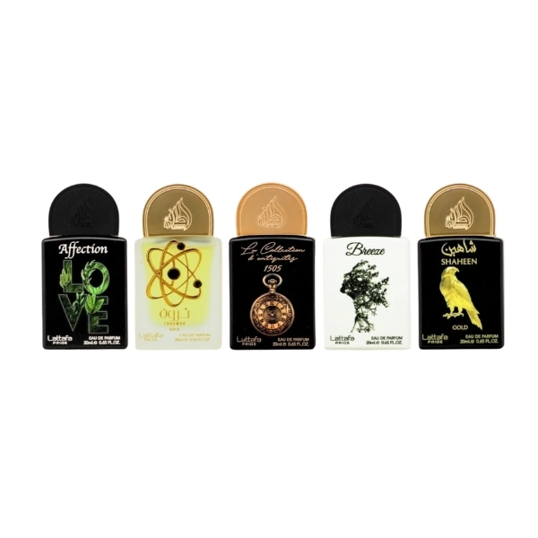 Set Lattafa Collection # 1 Unisex, Eau De Parfum, Affection 20ml + Tharwah Gold 20ml + Watch1505 20ml + Breeze 20ml + Shaheen Gold 20ml