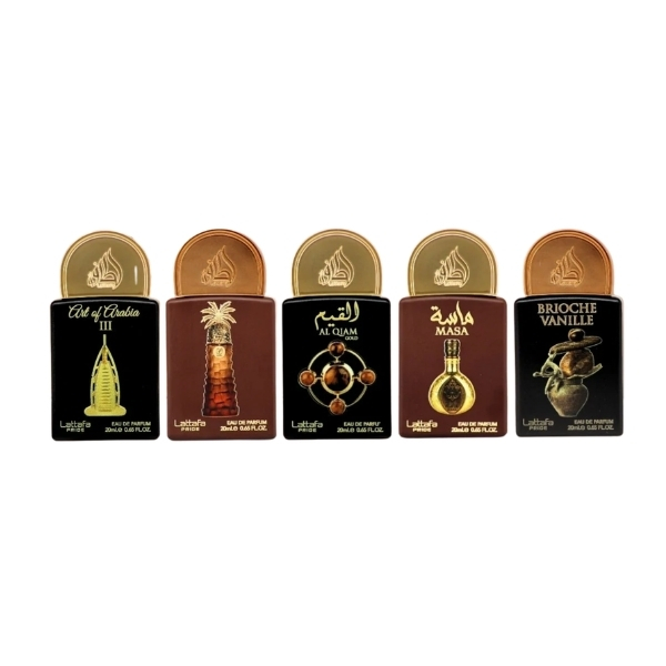 Set Lattafa Collection # 4 Unisex, Eau De Parfum, Art Of Arabia Iii 20ml + Ajwaa 20ml + Al Qiam Gold 20ml + Masa 20ml + Brioche Vanille 20ml