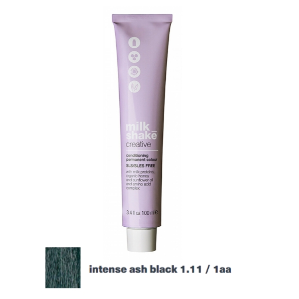 Vopsea permanenta Milk Shake Creative, 1.11 | 1AA, Negru Cenusiu Intens, 100ml In stoc