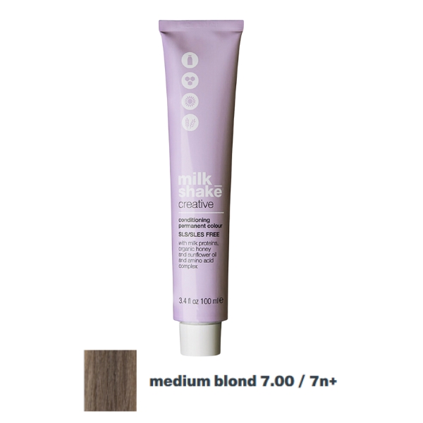 Vopsea permanenta Milk Shake Creative, 7.00 | 7N+, Blond Mediu Natural, 100ml Cantitate limitata