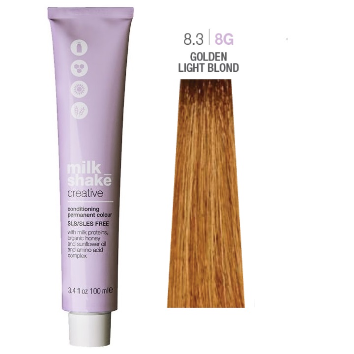 Vopsea permanenta Milk Shake Creative 8.3|8G, Blond Deschis Auriu, 100ml In stoc