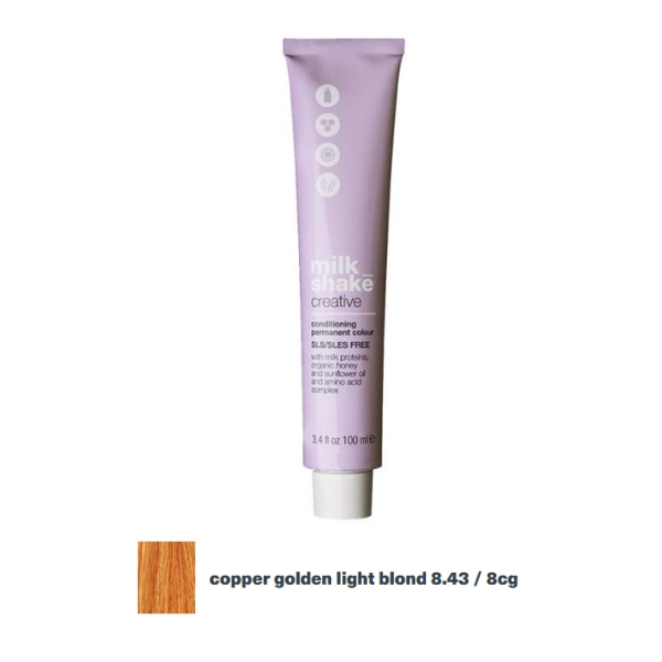 Vopsea permanenta Milk Shake Creative, 8.43 | 8CG, Blond Deschis Cupru Auriu, 100ml