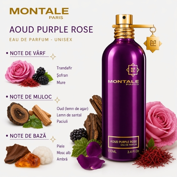 - Montale Paris Aoud Purple Rose face parte din categoria parfumurilor de nisa, cunoscute pentru a crea arome complexe si sofisticate, utilizand ingrediente de inalta calitate.