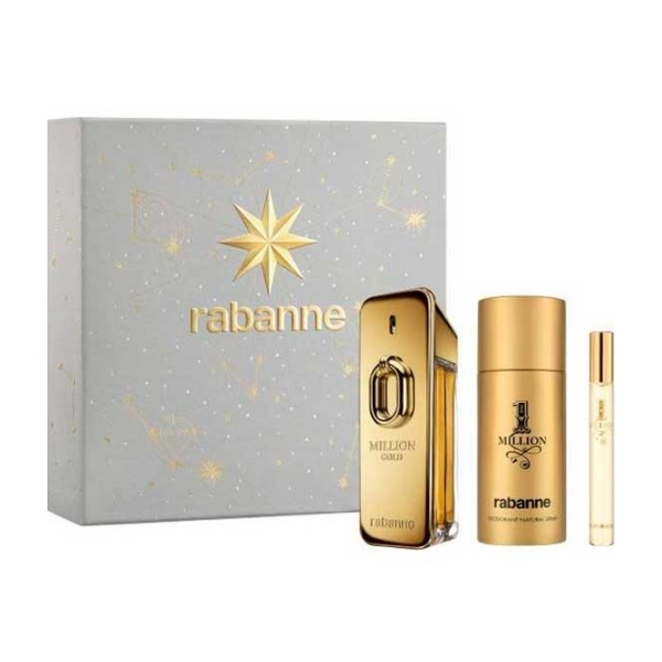 Set Rabanne Million Gold Intense, Barbati, Eau De Parfum 100ml + Deodorant 150ml + Eau De Parfum 10ml