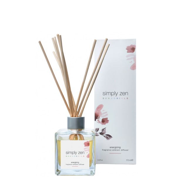 Simply Zen Sensorials Energizing Diffuser este un difuzor de parfum pentru incapere. Parfumeaza mediul intr-un mod continuu invaluind simturile cu un parfum placut, un amestec de ierburi mediteraneene si citrice. Contine arome de portocale, grapefruit, litsea cubeba (cunoscuta sub numele de aroma zambetului), salvie, oregano, rozmarin si patchouli.