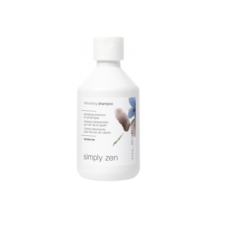 Samponul Simply Zen Detoxifying este un produs cu efect detoxifiant pentru toate tipurile de par. Un sampon de ultima generatie cu o actiune specifica de detoxifiere si purificare. O formula delicata, fara sulfati, care curata delicat parul. Contine extract de propolis, o substanta naturala produsa de albine si folosita pentru a-si apara stupul de boli, cu proprietati antibacteriene si de vindecare, precum si cu calitati regenerante si antioxidante. Ingrediente active: bergamot, extract de echisetum, eucalipt, acid lactic, ulei essential de lavanda, ulei esential de menta, extract de grapefruit, extract de propolis, ulei esential de salvie, extract de papadie.