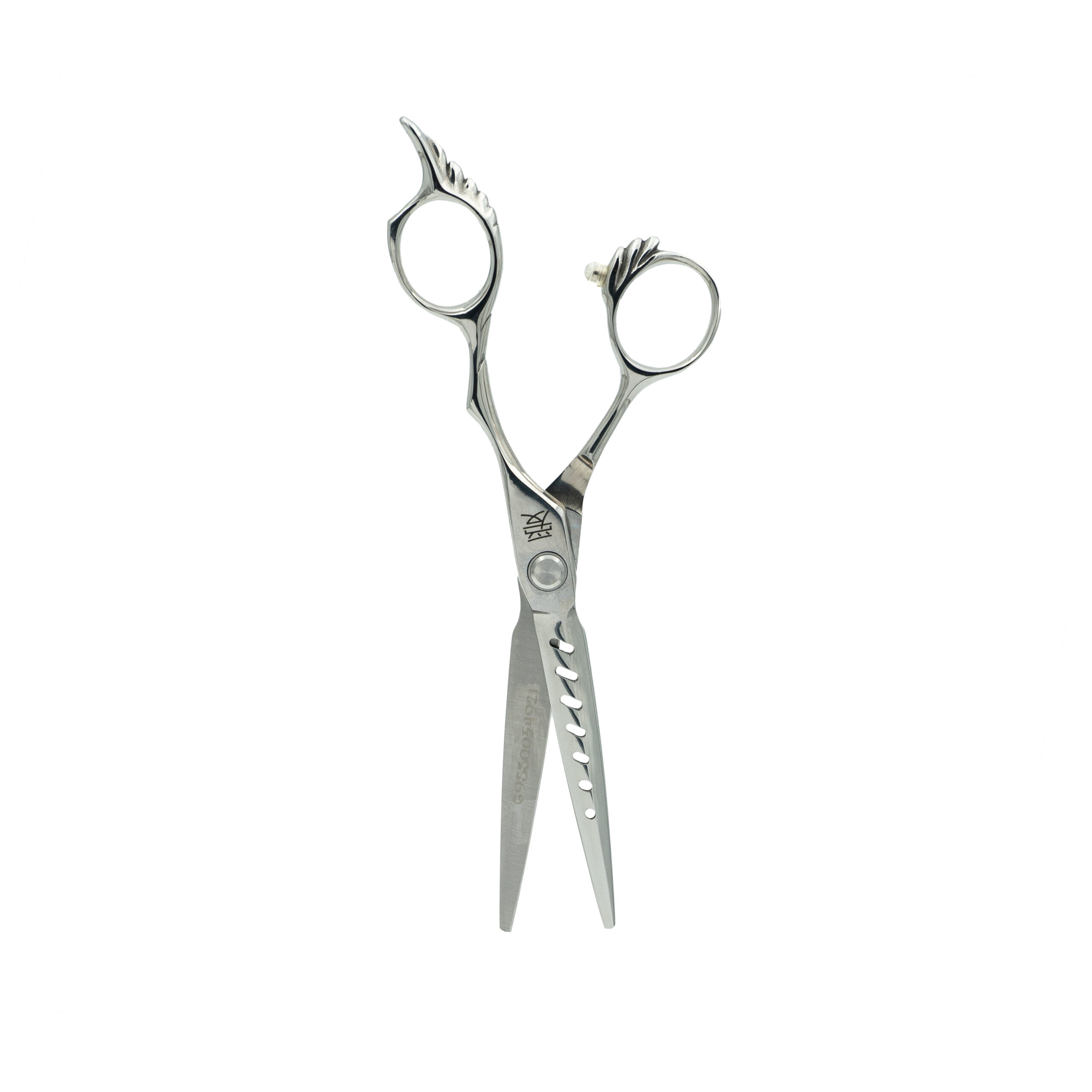 "Samurai" foarfeca faurita in intregime in Japonia din otel de cea mai buna calitate. Manerul offset curge delicat catre suportul fix pentru deget, permitand totodata taierea cu o pozitie mai joasa, mai putin stresanta pentru brat. Lamele convexe extrem de ascutite, sunt realizate din otel japonez inoxidabil si sunt mai inguste la baza. Acest lucru aplica o greutate mai mare atunci cand este nevoie, facand slice-ul o placere si dezvolta o putere crescuta facand usoara taierea bruta. Varfurile lamei sunt ascutite, oferind un control deosebit pentru taieturi de precizie. Per ansamblu aceste foarfece sunt balansate exemplar si au un surub de tensiune ajustabil, pentru a fi setat dupa preferintele fiecaruia. Surubul este creat din 9 rulmenti. Unul mare, principal, ce ruleaza maxim pe metal si 8 mici ce maximizeaza flexarea foarfecii la calitate maxima.