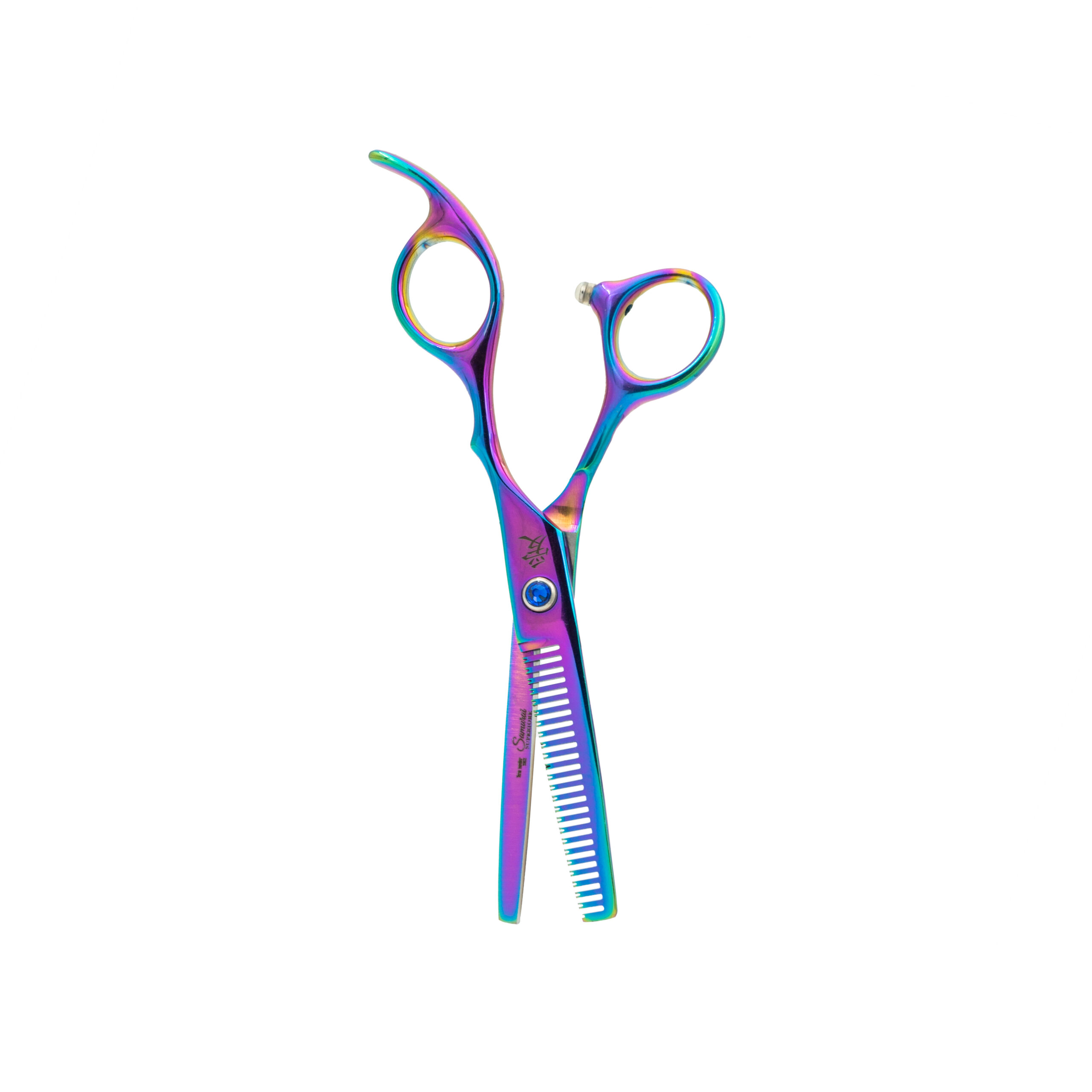 "Samurai" foarfeca faurita in intregime in Japonia din otel de cea mai buna calitate. Manerul offset curge delicat catre suportul fix pentru deget, permitand totodata taierea cu o pozitie mai joasa, mai putin stresanta pentru brat. Lamele convexe extrem de ascutite, sunt realizate din otel japonez inoxidabil si sunt mai inguste la baza. Acest lucru aplica o greutate mai mare atunci cand este nevoie, facand slice-ul o placere si dezvolta o putere crescuta facand usoara taierea bruta. Varfurile lamei sunt ascutite, oferind un control deosebit pentru taieturi de precizie. Per ansamblu aceste foarfece sunt balansate exemplar si au un surub de tensiune ajustabil, pentru a fi setat dupa preferintele fiecaruia. Surubul este creat din 9 rulmenti. Unul mare, principal, ce ruleaza maxim pe metal si 8 mici ce maximizeaza flexarea foarfecii la calitate maxima.