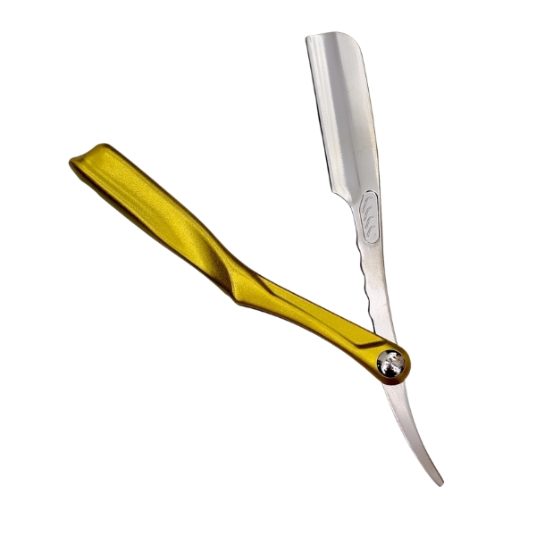 Este un brici profesional pentru frizerie, realizat cu lama din otel inoxidabil si maner metalic durabil, conceput pentru precizie maxima si control excelent. Designul ergonomic il face ideal pentru contur, barbierit clasic si finisaje detaliate, fiind potrivit atat pentru uz profesional, cat si personal.
