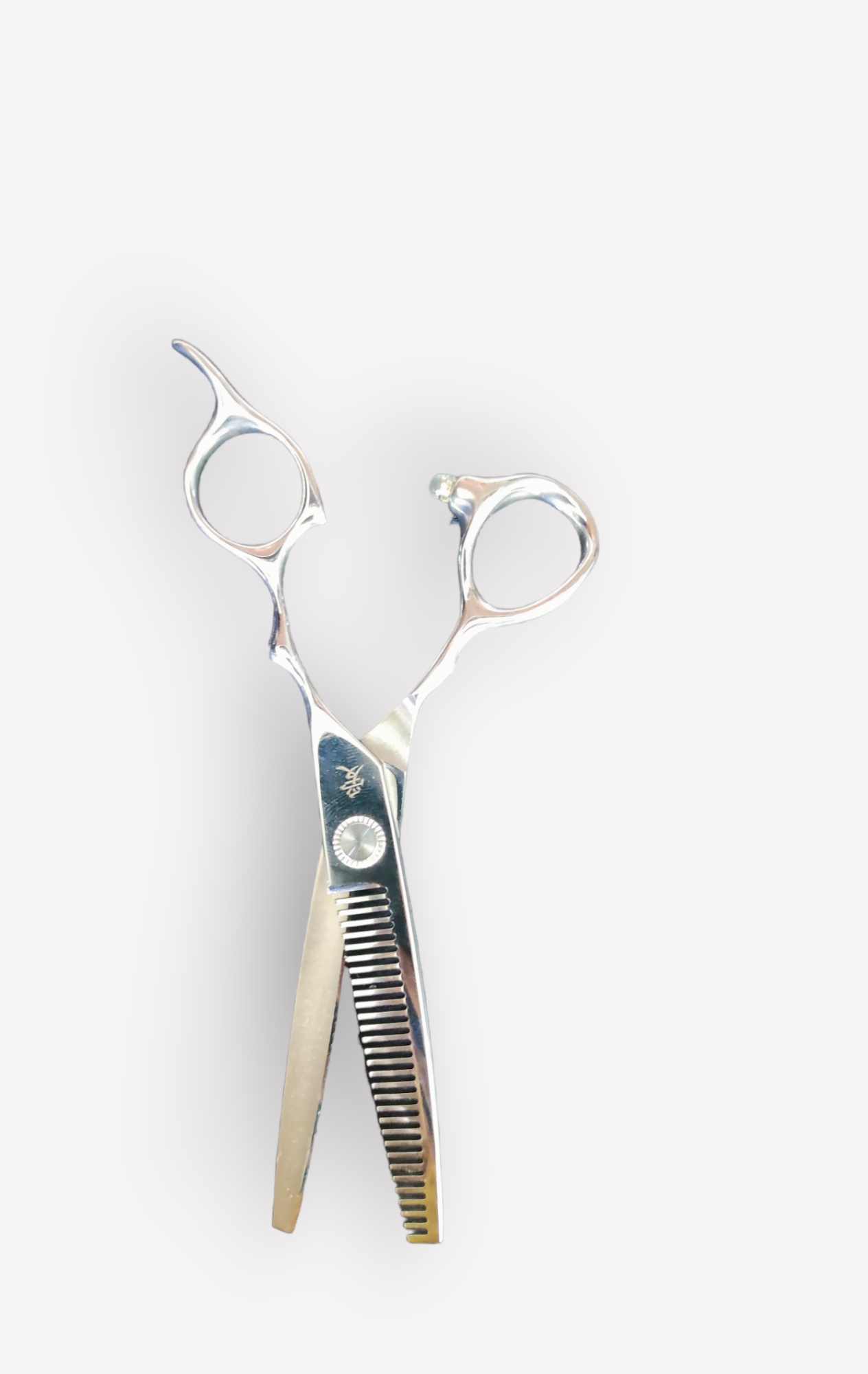 "Samurai" foarfeca faurita in intregime in Japonia din otel de cea mai buna calitate. Manerul offset curge delicat catre suportul fix pentru deget, permitand totodata taierea cu o pozitie mai joasa, mai putin stresanta pentru brat. Lamele convexe extrem de ascutite, sunt realizate din otel japonez inoxidabil si sunt mai inguste la baza. Acest lucru aplica o greutate mai mare atunci cand este nevoie, facand slice-ul o placere si dezvolta o putere crescuta facand usoara taierea bruta. Varfurile lamei sunt ascutite, oferind un control deosebit pentru taieturi de precizie. Per ansamblu aceste foarfece sunt balansate exemplar si au un surub de tensiune ajustabil, pentru a fi setat dupa preferintele fiecaruia. Surubul este creat din 9 rulmenti. Unul mare, principal, ce ruleaza maxim pe metal si 8 mici ce maximizeaza flexarea foarfecii la calitate maxima.