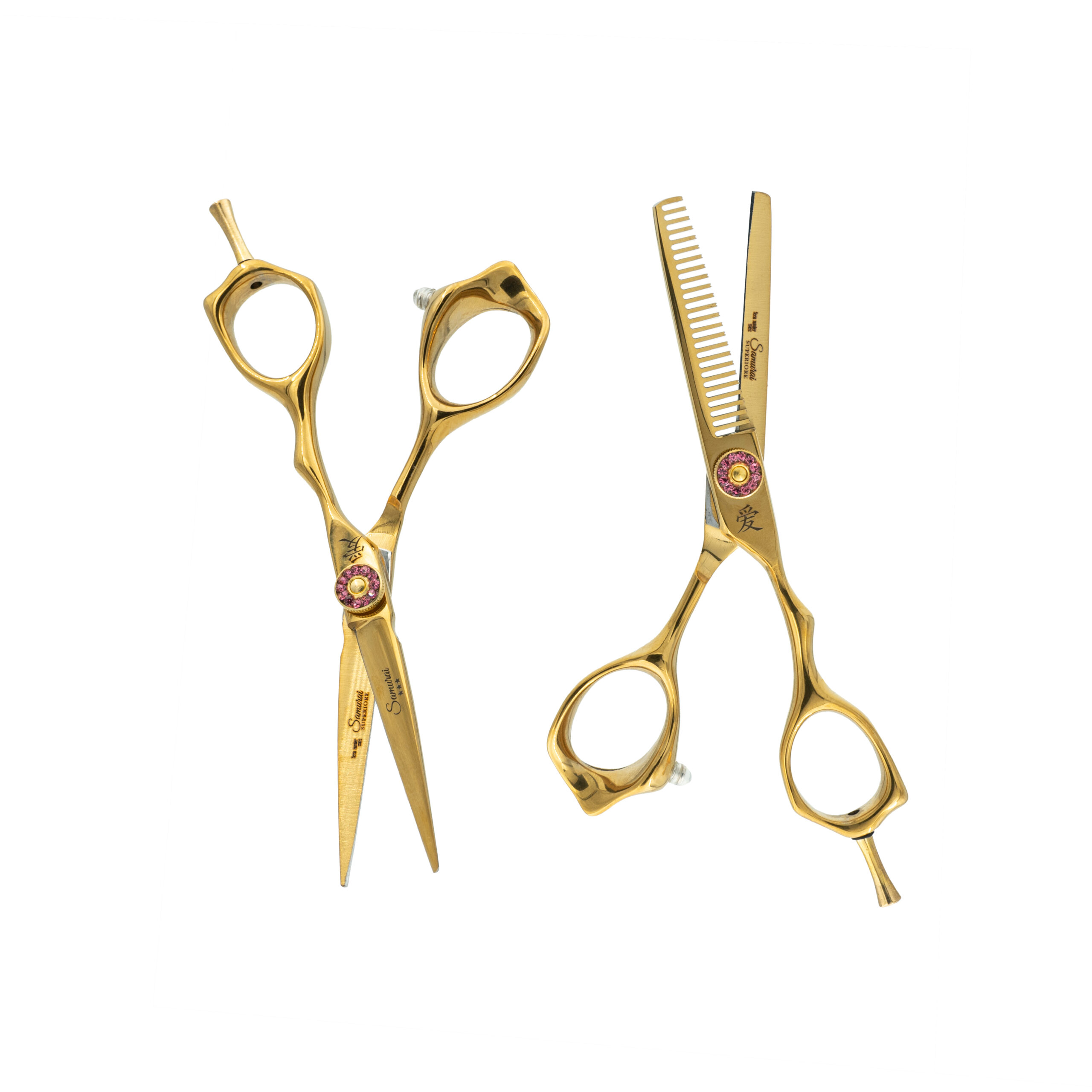 "Samurai" foarfeca faurita in intregime in Japonia din otel de cea mai buna calitate. Manerul offset curge delicat catre suportul fix pentru deget, permitand totodata taierea cu o pozitie mai joasa, mai putin stresanta pentru brat. Lamele convexe extrem de ascutite, sunt realizate din otel japonez inoxidabil si sunt mai inguste la baza. Acest lucru aplica o greutate mai mare atunci cand este nevoie, facand slice-ul o placere si dezvolta o putere crescuta facand usoara taierea bruta. Varfurile lamei sunt ascutite, oferind un control deosebit pentru taieturi de precizie. Per ansamblu aceste foarfece sunt balansate exemplar si au un surub de tensiune ajustabil, pentru a fi setat dupa preferintele fiecaruia. Surubul este creat din 9 rulmenti. Unul mare, principal, ce ruleaza maxim pe metal si 8 mici ce maximizeaza flexarea foarfecii la calitate maxima.