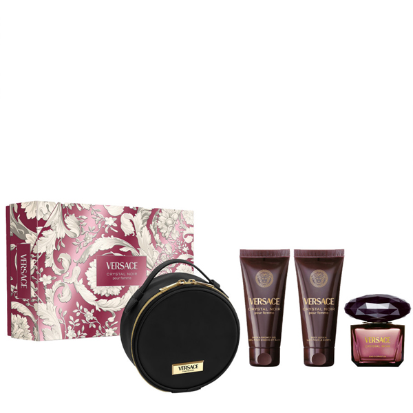 Set Versace Crystal Noir, Femei, Eau de parfum 90 ml + Lotiune pentru Corp 100ml + Gel de Dus 100ml + Geanta Cosmetice