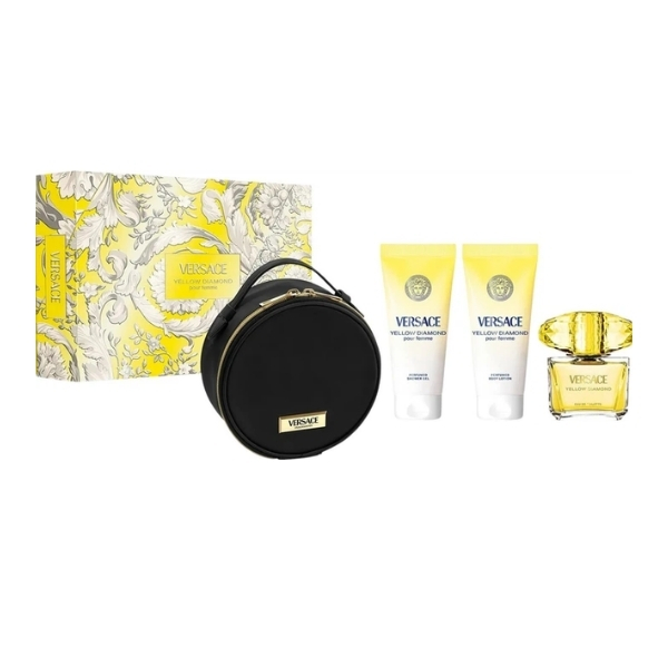 Set Versace Yellow Diamond, Femei, Eau de Toilette 90 ml + Lotiune de corp 100 ml + Gel de dus 100 ml + Geanta cosmetice