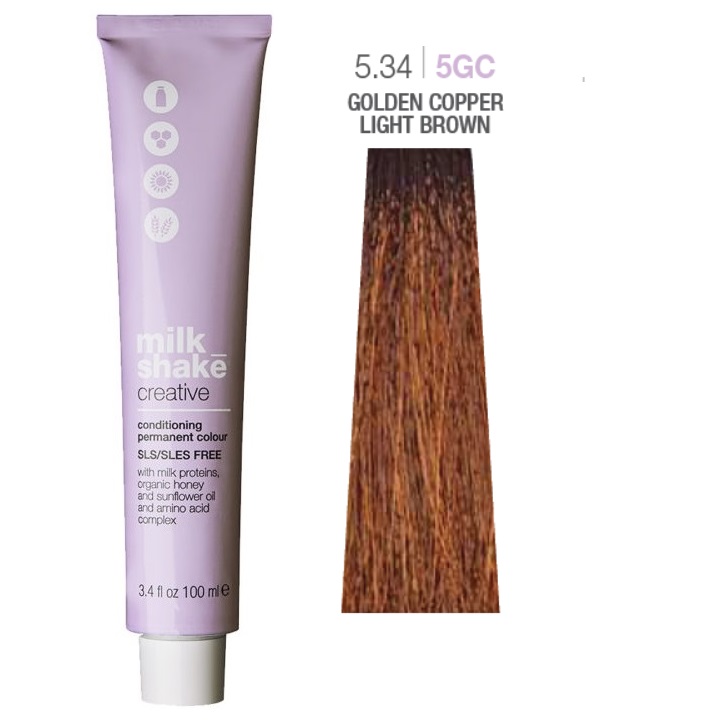 Vopsea permanenta Milk Shake Creative 5.34|5GC, Castaniu Deschis Aramiu Auriu, 100ml