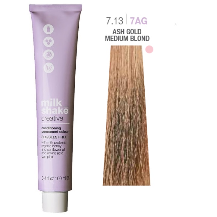 Vopsea permanenta Milk Shake Creative 7.13|7AG, Blond Mediu Auriu Cenusiu Bej, 100ml Cantitate limitata