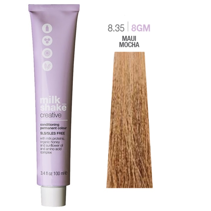 Vopsea permanenta Milk Shake Creative 8.35|8GM, Blond Deschis Cafea Maui Mocha, 100ml In stoc