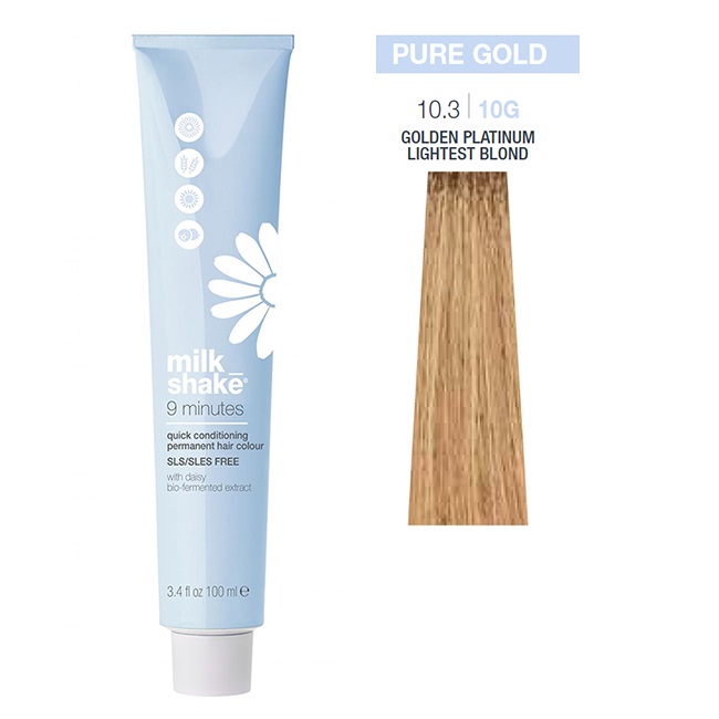 Vopsea permanenta rapida Milk Shake 9 Minutes 10.3, Blond Deschis Platinat Auriu, 100ml In stoc