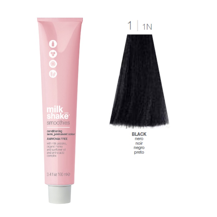 Vopsea semi-permanenta Milk Shake Smoothies 1|1N, Negru Natural, 100ml Cantitate limitata