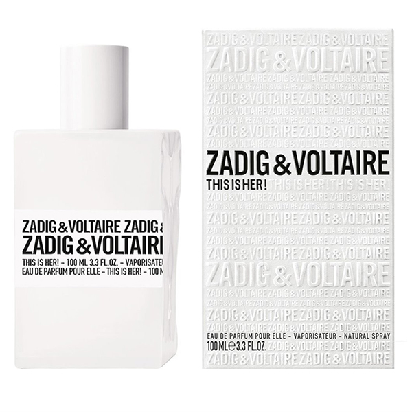 - Descriere: Zadig & Voltaire This Is Her EDP este un parfum oriental si gurmand pentru femei, lansat in 2016. Notele de varf incep cu capsuni, aducand o deschidere dulce si fructata. Iasomia, in inima parfumului, confera o nota florala si feminina, in timp ce baza adauga accente dulci de chantilly, calbasan si lemn de santal, oferind o adancime senzuala si calda.