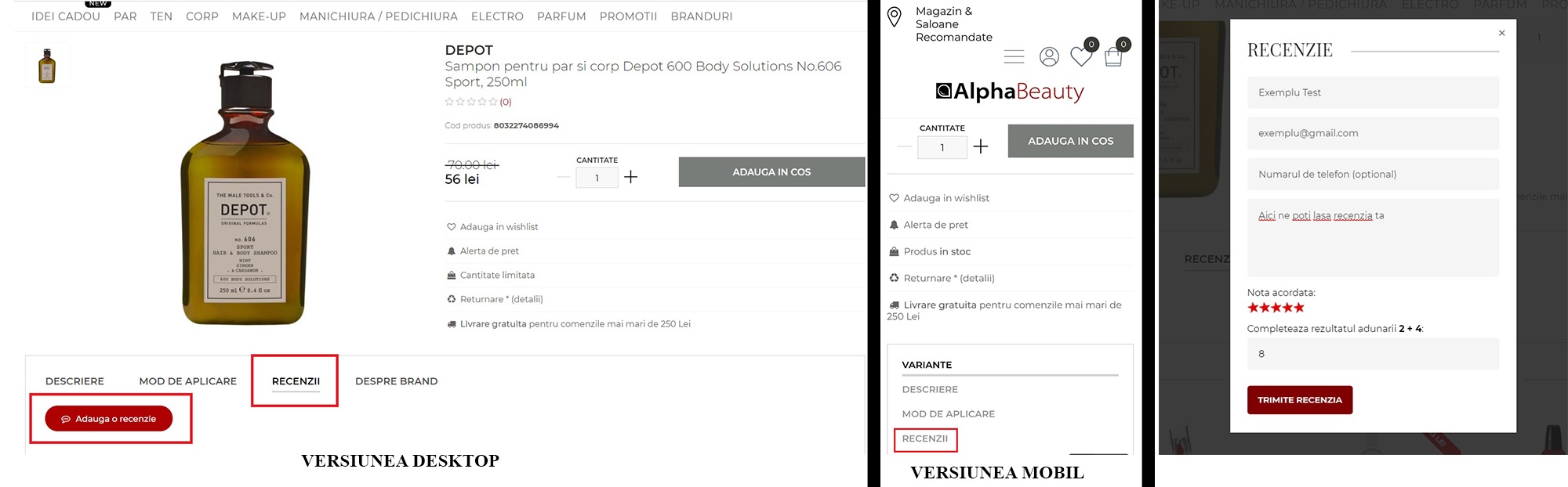 Pentru a putea participa la campania promotionala, Participantul trebuie sa lase o recenzie la un produs folosit/testat comercializat pe site-ul www.alphabeauty.ro. Pe adresa de e-mail completata de catre participant se trimite un cod pe care acesta il poate folosi in cos pentru a beneficia de extra 10% reducere. Codul de reducere poate fi cumulat cu restul promotiilor active pe site. Codurile de recenzii nu pot fi cumulate in acelas cos de cumparaturi.